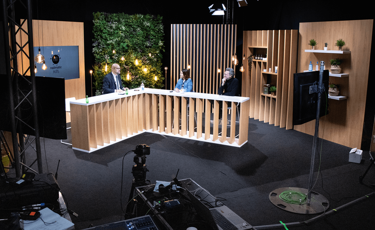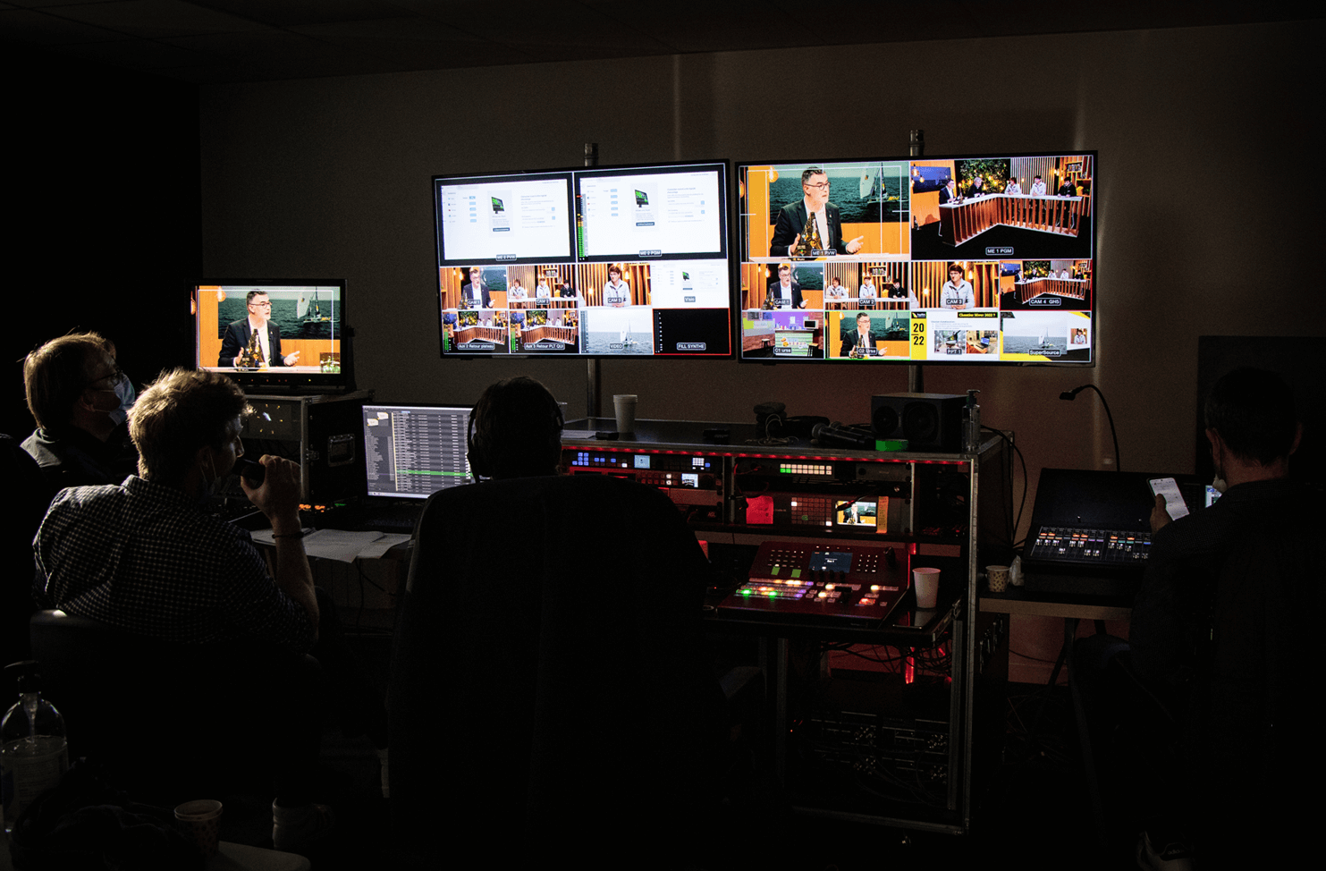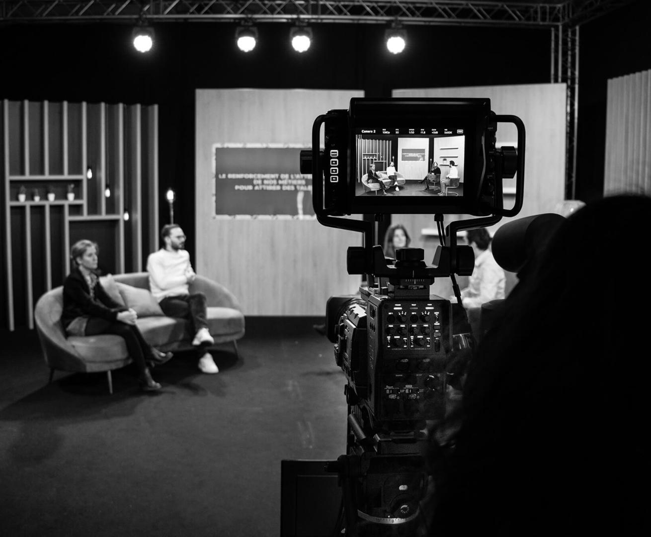 répondant aux normes broadcast : régie vidéo, équipement son et lumière, caméra streaming, solution de visioconférence (Teams, Zoom, etc.)